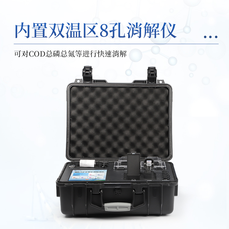 4、内置双温区8孔消解仪,左右温区独立控制,可对COD总磷总氮等进行快速消解。